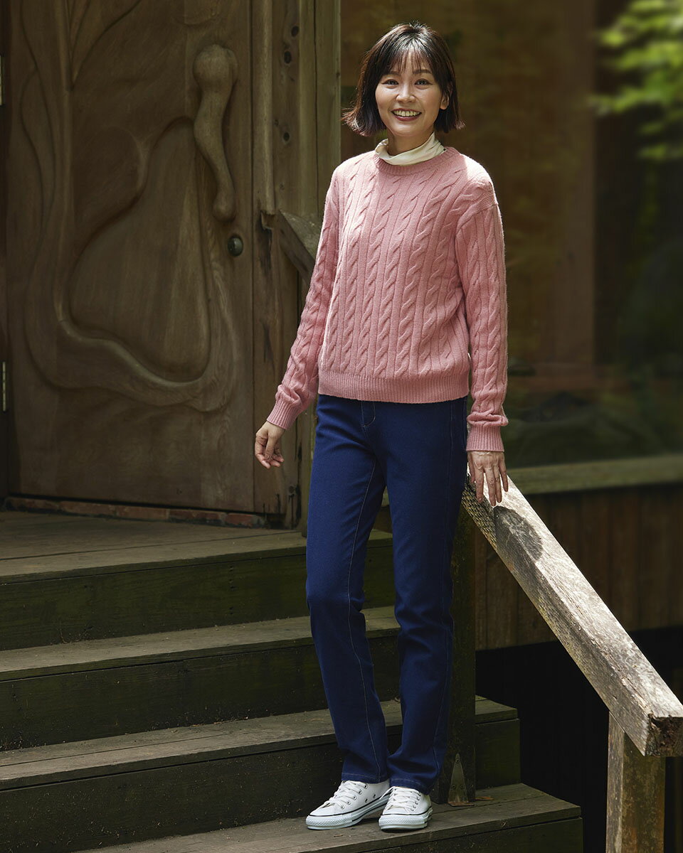こちらは、おしゃれなケーブルニットで、家庭で洗えるのが嬉しいポイントです。